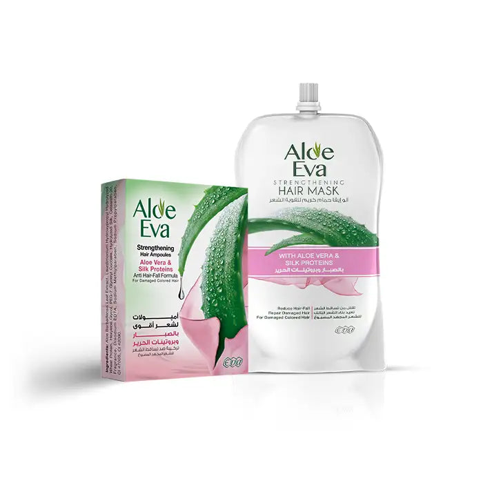 آلو إيڤا ساشيت حمام كريم لتقويه الشعر بالصبار و بروتينات حرير 250 جم + آلو إيڤا أمبولات لشعر أقوى بالصبار و بروتينات حرير ( 4 أمبولات *15 مل )