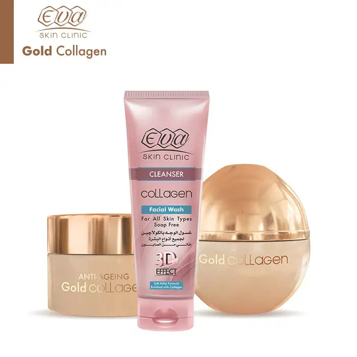 كريم ليل للعناية بمحيط العين بالكولاجين وجزيئات الذهب 15 مل + ايفا كولاجين كريم الذهب + إيڤا سكين كلينك كولاجين غسول للوجه - 150 مل