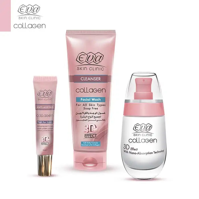 إيڤا سكين كلينك كولاجين كريم الليل للعينين - 15 مل + إيڤا سكين كلينك كولاجين كريم للخطوط الرفيعة +30 - 50 مل + إيڤا سكين كلينك كولاجين غسول للوجه - 150 مل