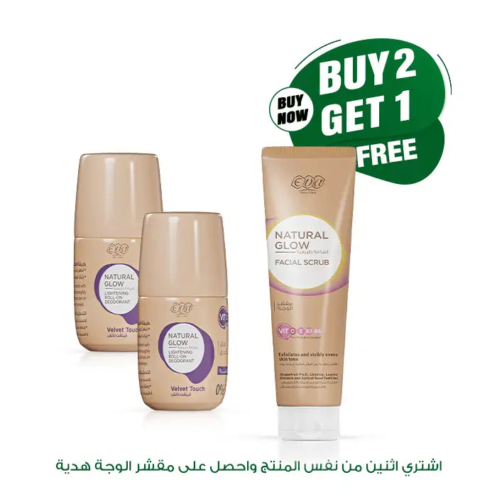 إيڤا سكين كير رول اون مزيل لرائحه العرق لتفتيح البشرة " ڤيلڤت تاتش " لإشراقة طبيعية 60 جرام + إيڤا سكين كير رول اون مزيل لرائحه العرق لتفتيح البشرة " ڤيلڤت تاتش " لإشراقة طبيعية 60 جرام + إيڤا سكين كير مقشر الوجه لإشراقة طبيعية 100 مل