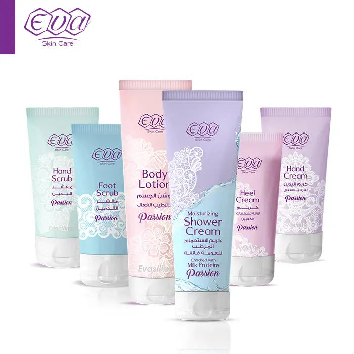 إيڤا سكين كير كريم لازاله تشققات الكعبين - باشن 60 مل+إيڤا سكين كير كريم اليدين للترطيب الفعال - باشن 60 مل+إيڤا سكين كير مقشر اليدين - باشن 50 مل+إيڤا سكين كير مقشر القدمين - باشن 60 مل+إيڤا سكين كير لوشن الجسم للترطيب الفعال - باشن 240 مل+إيڤا سكين كير كريم الاستحمام المرطب لنعومه فائقة - باشن - 250 مل